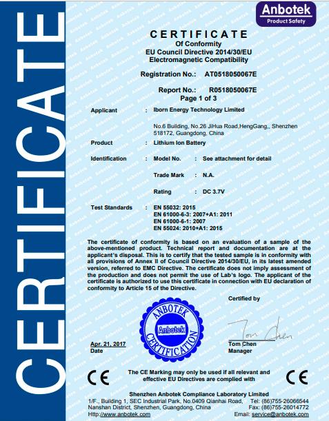 | Operating Temperature Range | Charge: -20~60℃ | -20 0<T≤10℃: 0.2C to 4.2V, 10<T<60℃: 0.5C to 4.2V |