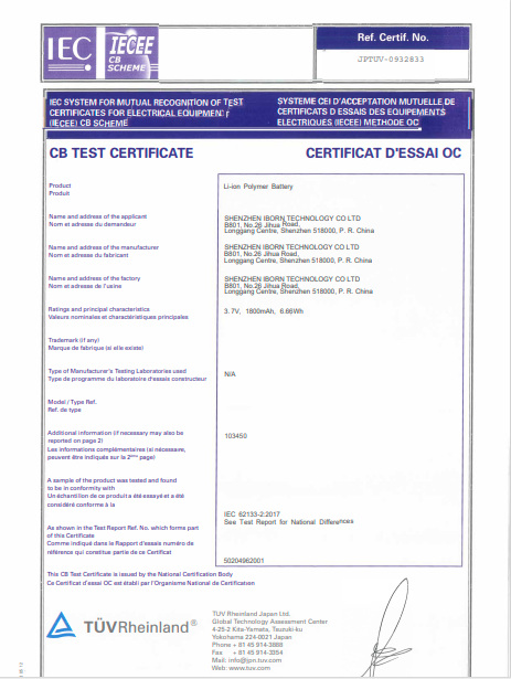 | Cycle Life | ≥500 times | (25 ℃,0.5 C / 1C ) |
